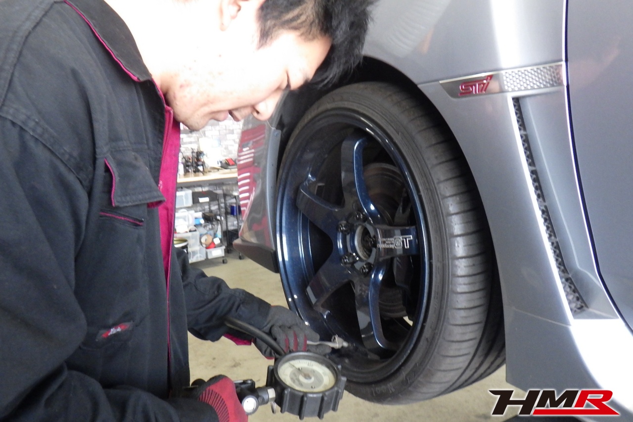 HMR(エイチエムアール)の秋山です。今回はADVAN19インチ ARROWZ車高調装備のWRX STI(VAB)の納車前点検整備を行いました。担当メカニックは立村です。