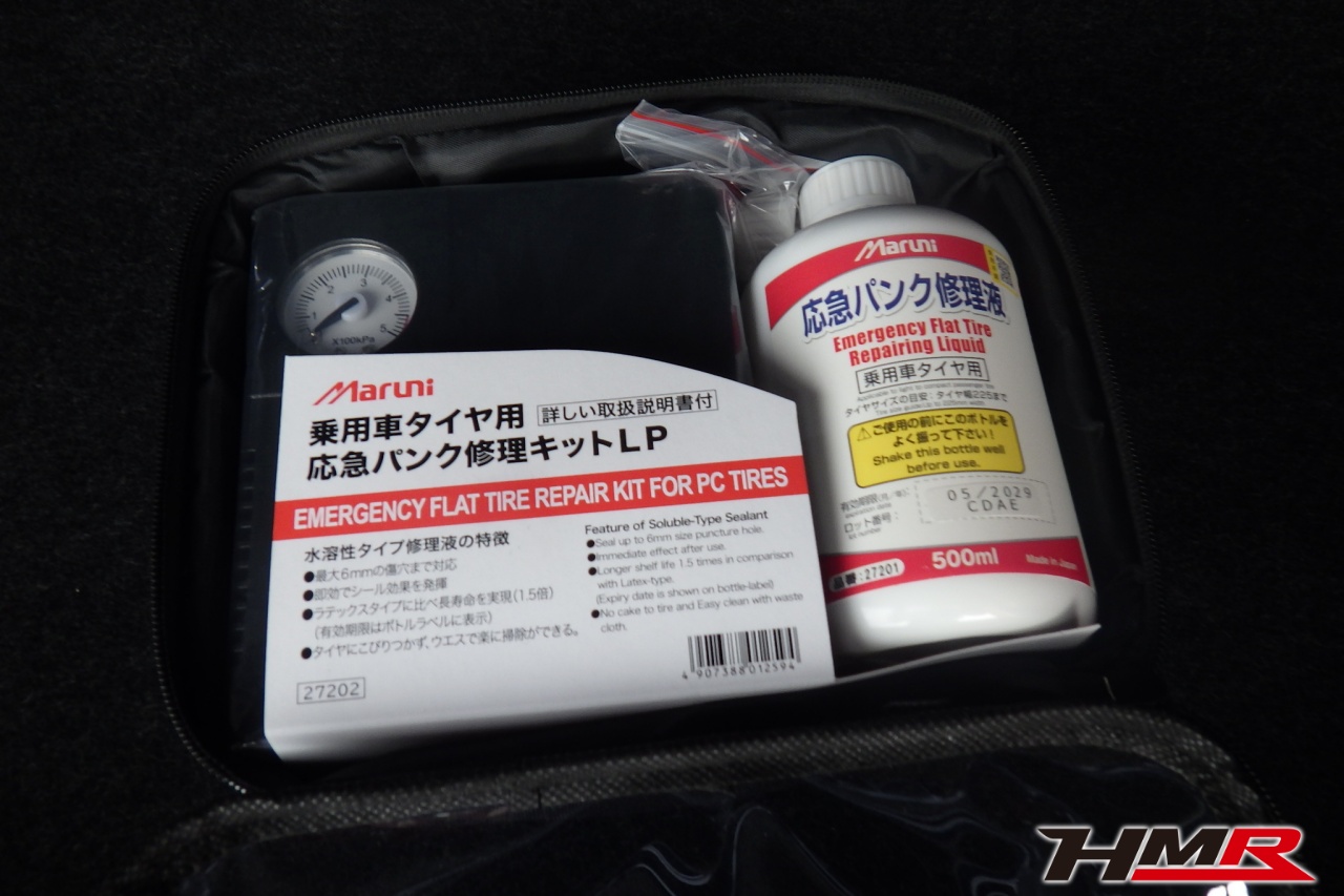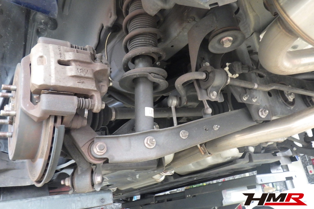 ハブベアリング・ボールジョイント、アーム・リンク類のガタ、ブッシュ・ブーツ類の劣化、エンジン・ミッション・デフからのオイル漏れと各マウント類、タイヤ溝の残量、空気圧の点検を行いました。特に問題ありませんでした。