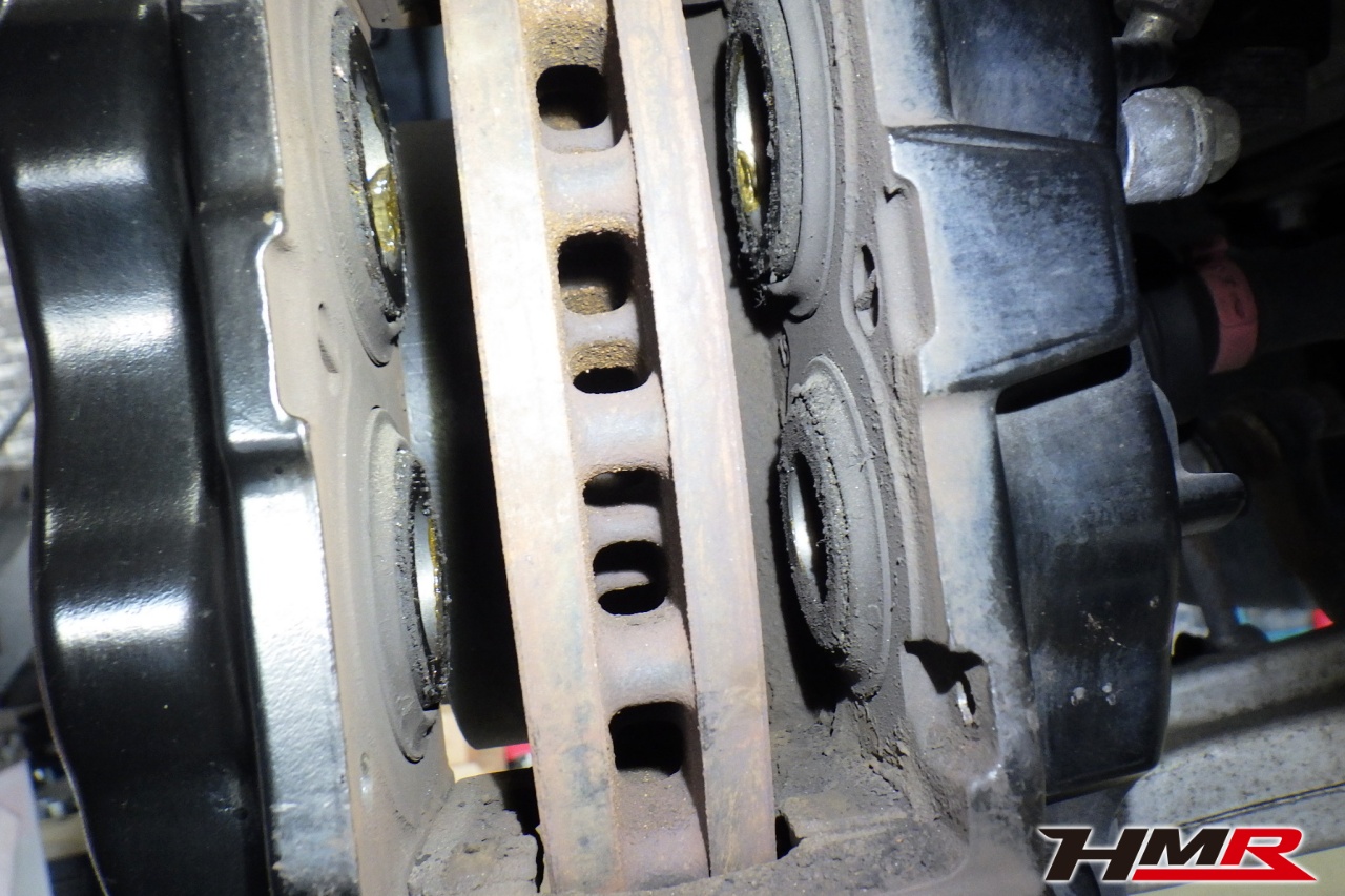 ブレーキキャリパーシール・キャリパーピストン、パッドの残量、ブレーキホースの劣化、ブレーキディスクローターの摩耗をチェックしました。特に問題ありませんでした。パッドの残量はフロント5.4mm・リア6.2mmでした。