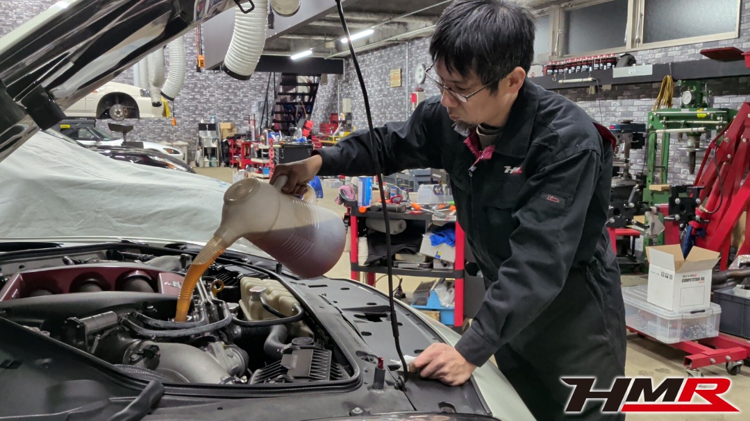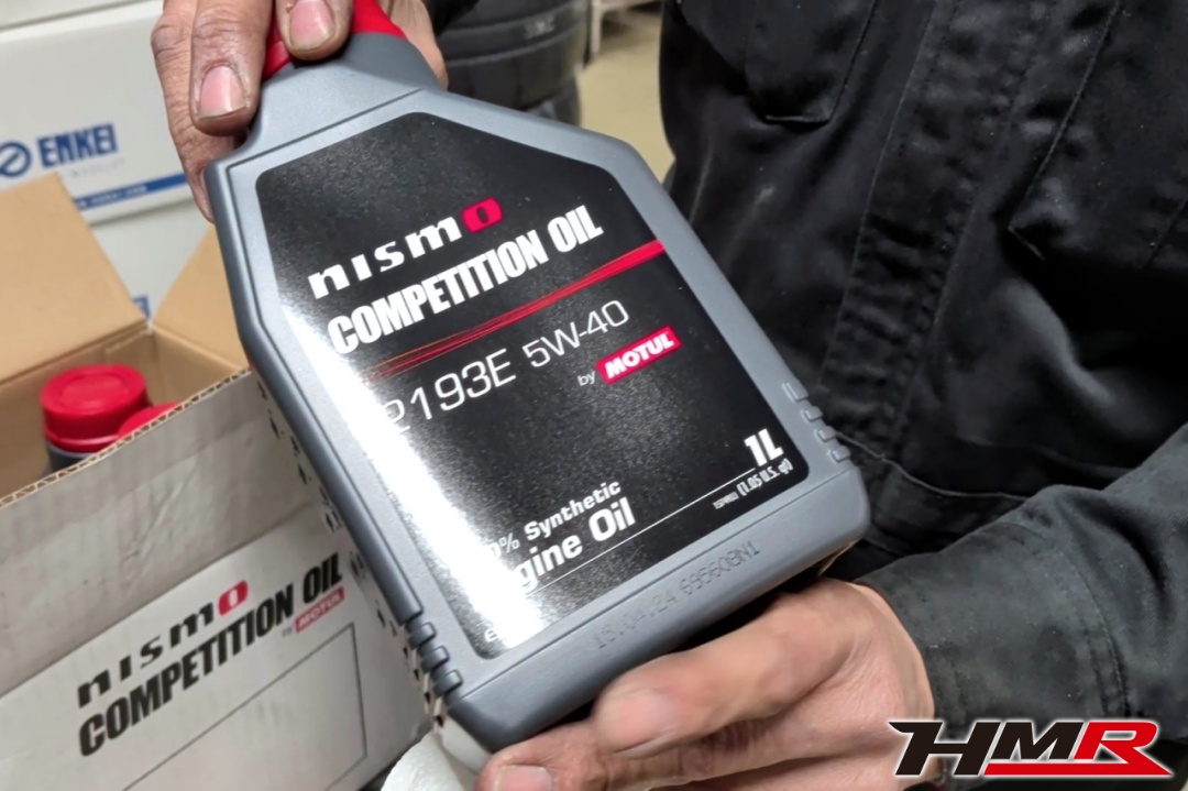 油脂類は、エンジンオイル、デフオイルの交換です。ミッションオイルは交換となると少し大変なので今回はこのままにして、ブレーキフルードをサーキット用のDOT5に交換です。エンジンオイルはMotulのニスモコンペティションオイルを入れます。メーカー側でサーキット走行に推奨しているオイルですね。