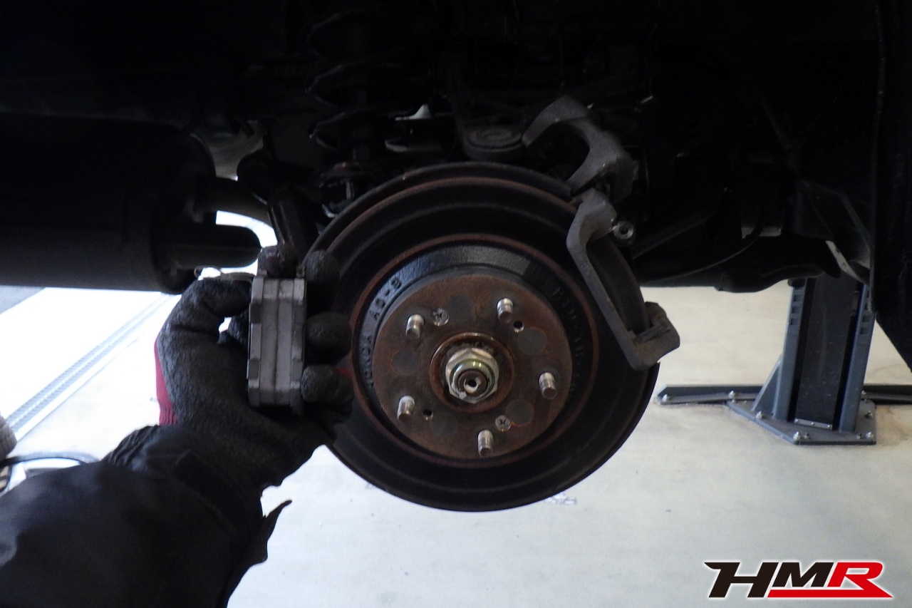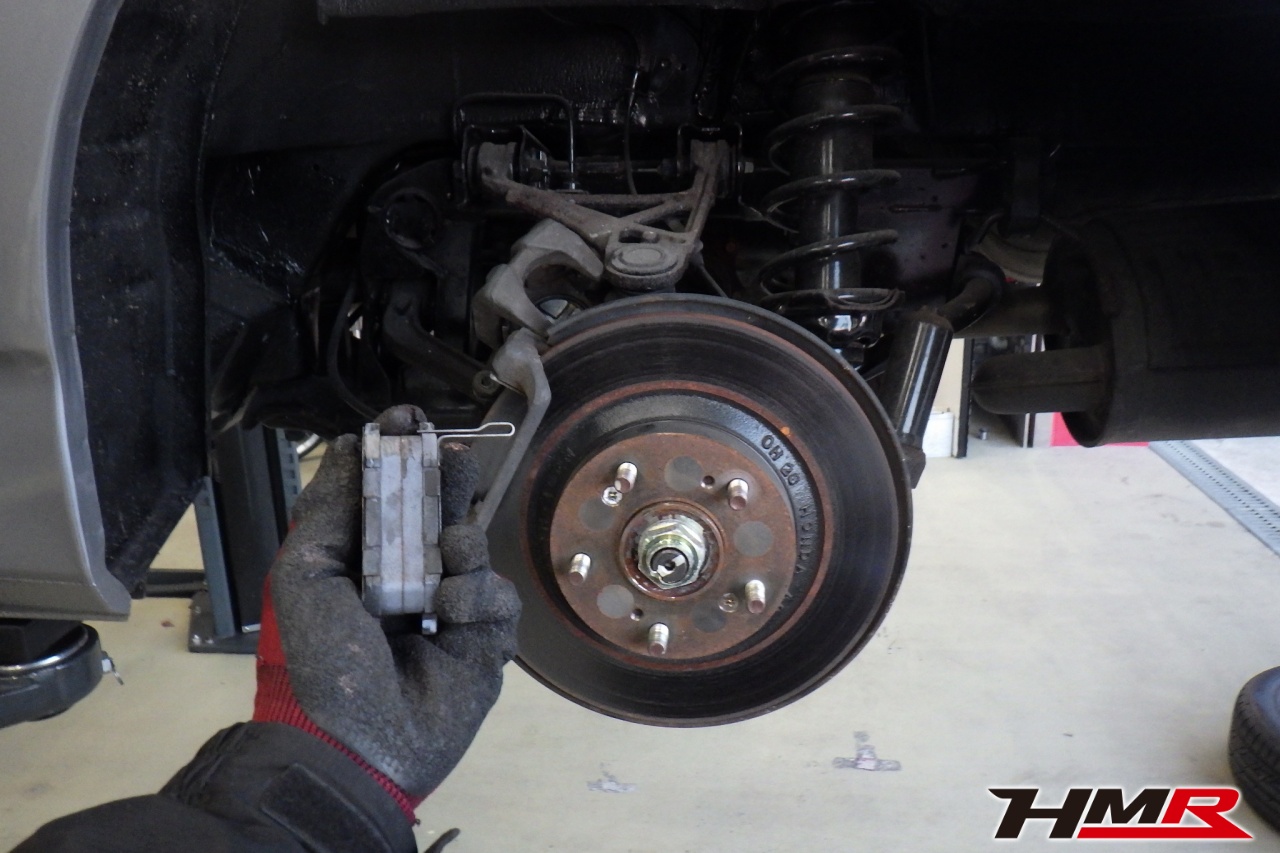 ブレーキキャリパーシール・キャリパーピストン、パッドの残量、ブレーキホースの劣化、ブレーキディスクローターの摩耗をチェックしました。ブレーキパッドの残量はフロント9.6mm・リア8.6mmでした。