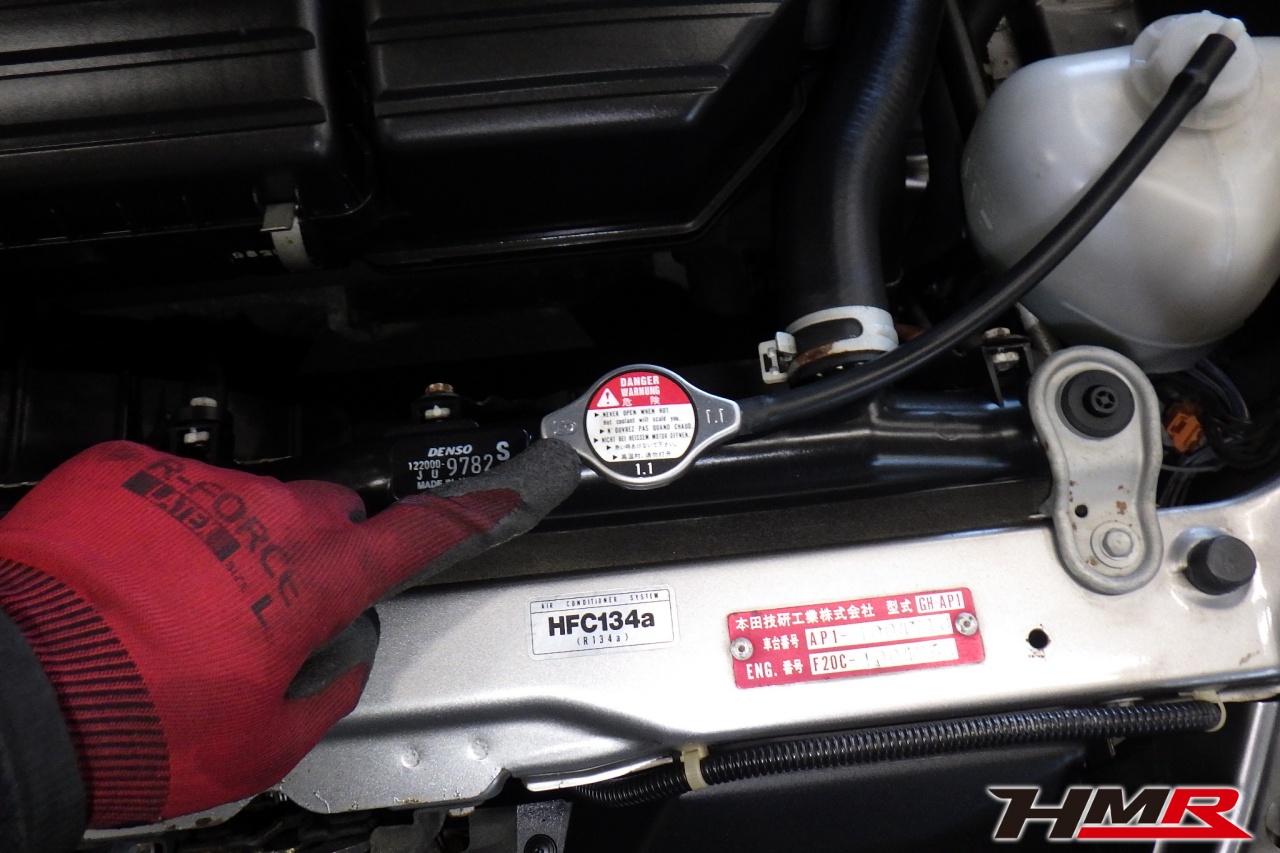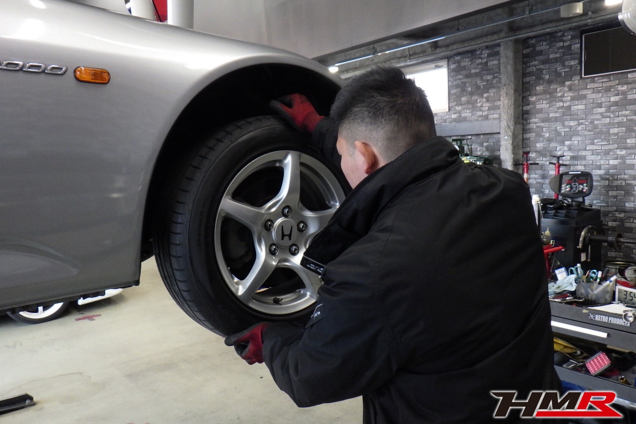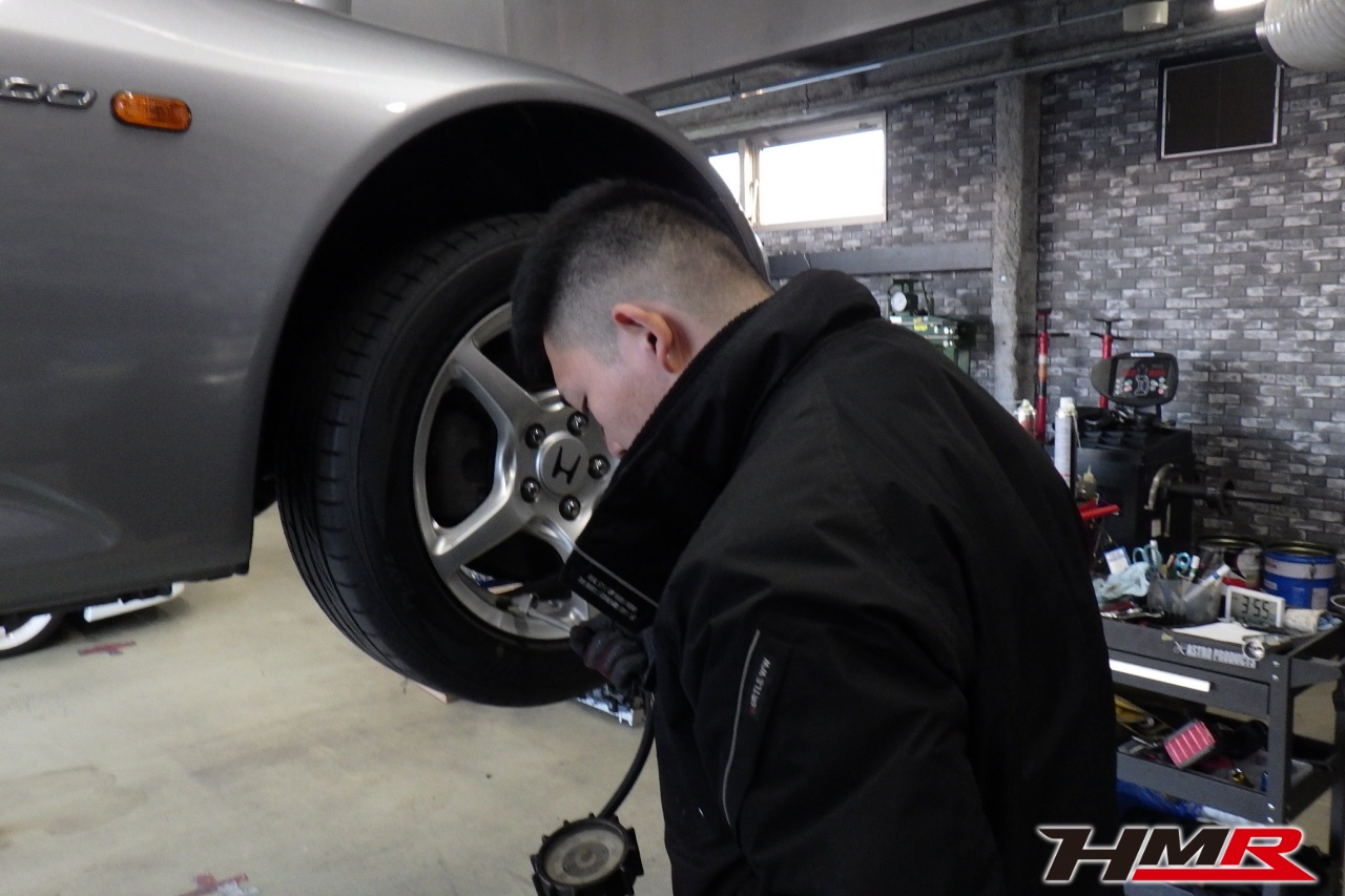HMR(エイチエムアール)の秋山です。今回はノーマルコンディション OP赤革シート装着のS2000(AP1)の納車前点検整備を行いました。担当メカニックは立村です。