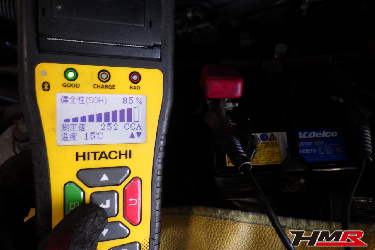バッテリー、インテークホース、エアクリーナー、補機ベルト、プラグ、ブレーキ・クラッチマスターシリンダー、各部ゴム類の劣化、パッキン類・シール類からのオイル滲み・漏れ、ラジエターの劣化、冷却水漏れ、その他異音などをチェックしました。特に問題ありませんでした。