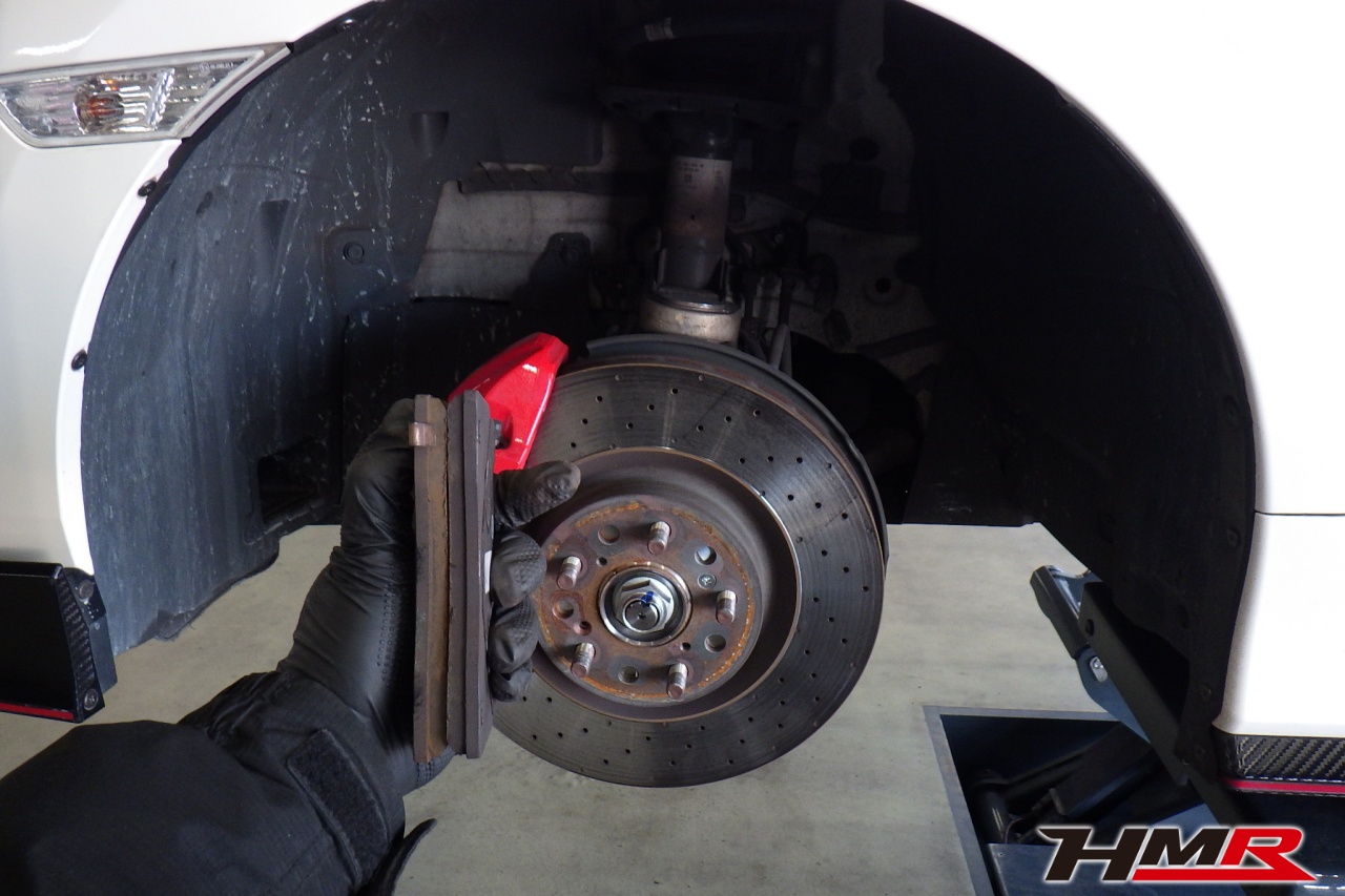 ブレーキキャリパーシール・キャリパーピストン、パッドの残量、ブレーキホースの劣化、ブレーキディスクローターの摩耗をチェックしました。パッドの残量はフロント6.2mm・リア5.6mmでした。
