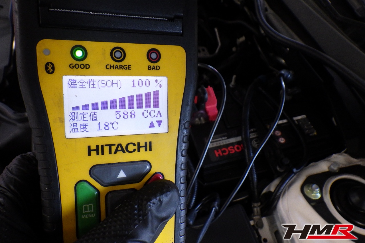 バッテリー、インテークホース、エアクリーナー、補機ベルト、プラグ、ブレーキ・クラッチマスターシリンダー、各部ゴム類の劣化、パッキン類・シール類からのオイル滲み・漏れ、ラジエターの劣化、冷却水漏れ、その他異音などをチェックしました。バッテリーが弱っていましたので交換しました。