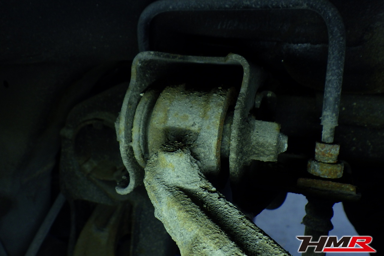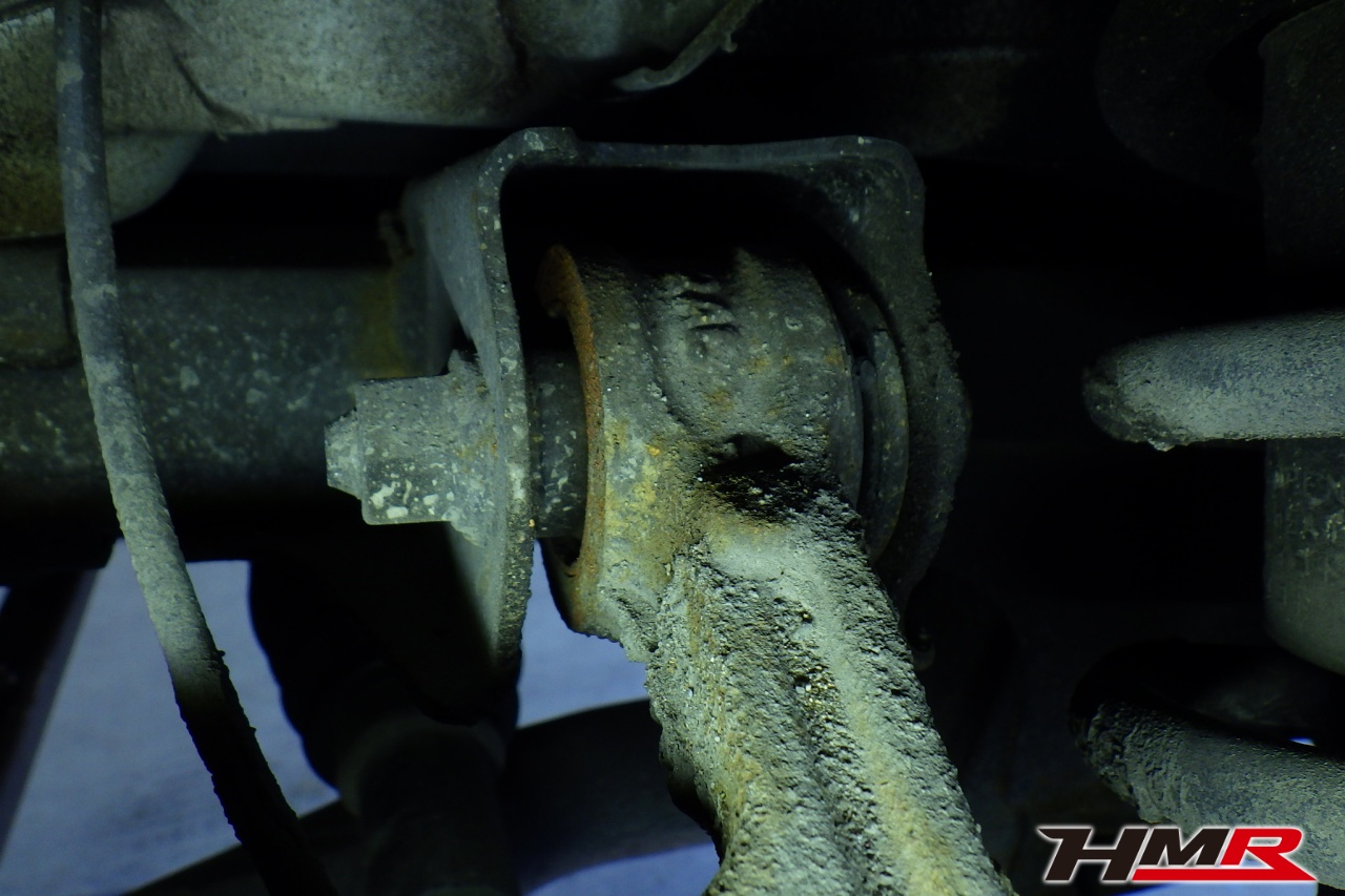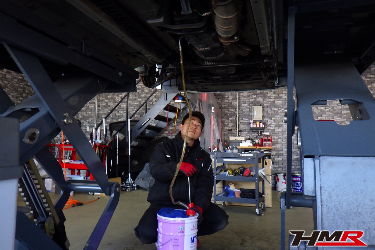 ハブベアリング・ボールジョイント、アーム・リンク類のガタ、ブッシュ・ブーツ類の劣化、エンジン・ミッション・デフからのオイル漏れと各マウント類、タイヤ溝の残量、空気圧の点検しました。