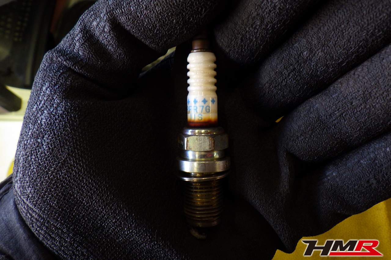 バッテリー、インテークホース、エアクリーナー、補機ベルト、プラグ、ブレーキ・クラッチマスターシリンダー、各部ゴム類の劣化、パッキン類・シール類からのオイル滲み・漏れ、ラジエターの劣化、冷却水漏れ、その他異音などをチェックしました。バッテリー、スパークプラグに摩耗がみられましたので新品交換しました。またエアクリーナーに汚れが見られましたのでこちらも交換しております。
