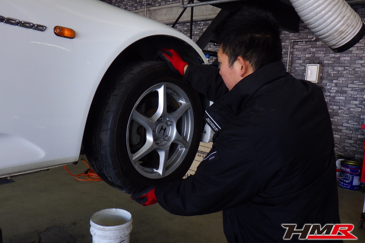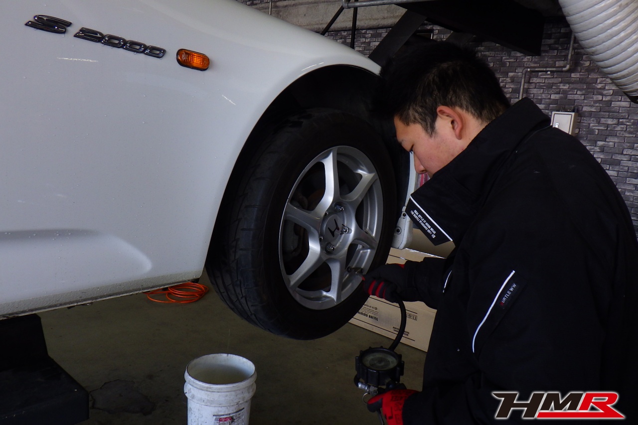 HMR(エイチエムアール)の秋山です。今回はオプションBBS鍛造アルミ 赤革シート装着のS2000(AP1)の納車前点検整備を行いました。担当メカニックは立村です。