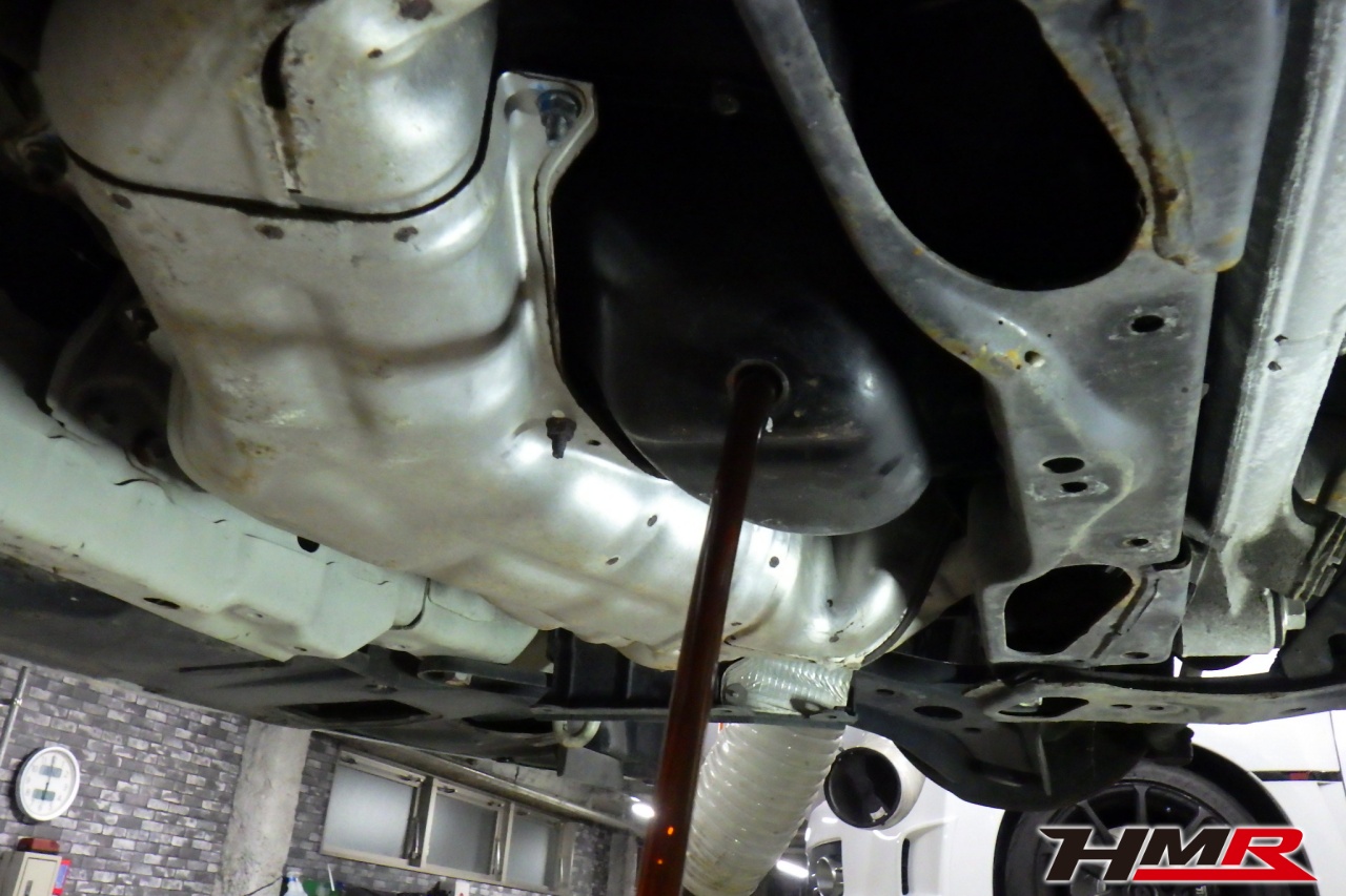 エンジンオイル、オイルフィルター、オイルフィルターセンターボルト、ミッションオイル、リアデフオイル、クーラント、ブレーキフルードを交換しました。エンジンオイルはWAKO’SプロステージS 10W-40、ミッションオイルはWAKO’Sギアオイル MT-75 リアデフオイルはWAKO’S ギアオイルMG-90に交換しています。