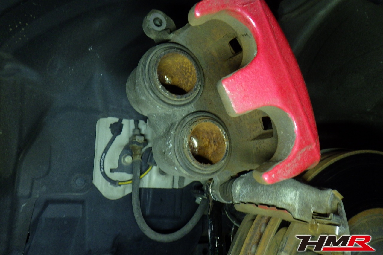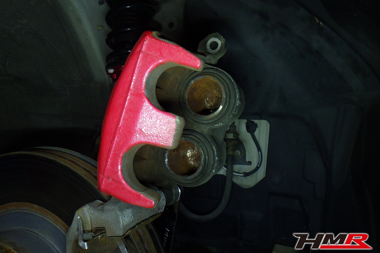 ブレーキキャリパーシール・キャリパーピストン、パッドの残量、ブレーキホースの劣化、ブレーキディスクローターの摩耗をチェックしました。パッドの残量はフロント9.8mm・リア5.4mmになります。